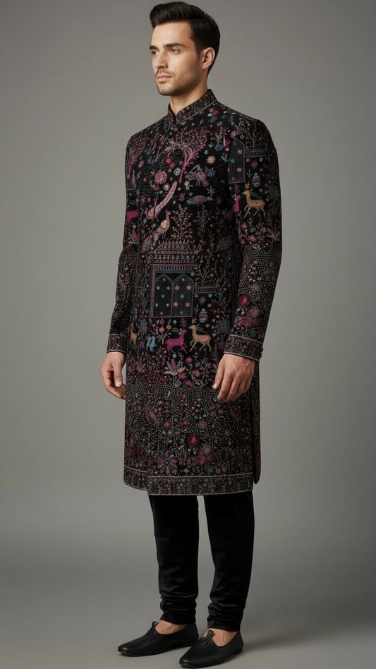 Rs 34,500 /-BLACK EMBROIDERED BANDHGALA SUIT
