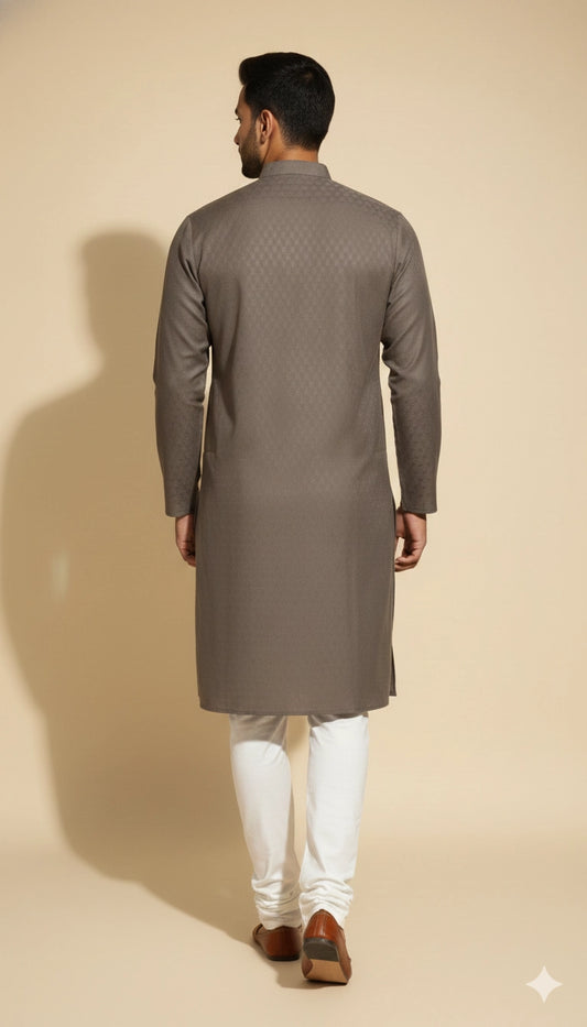 Charcoal Grey Cotton Kurta for Men (Mandarin Collar) | Dresswala NX