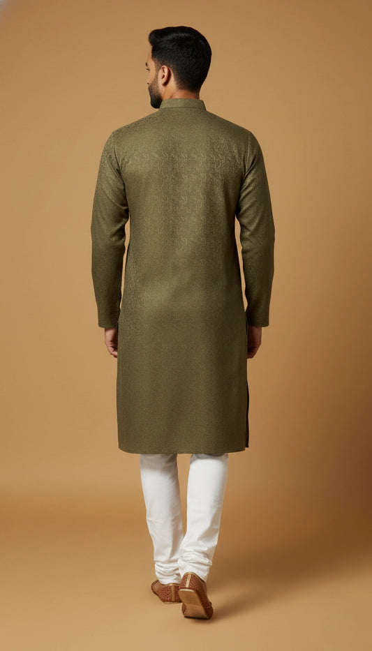 Olive Green Textured Cotton Kurta for Men | Dresswala NX