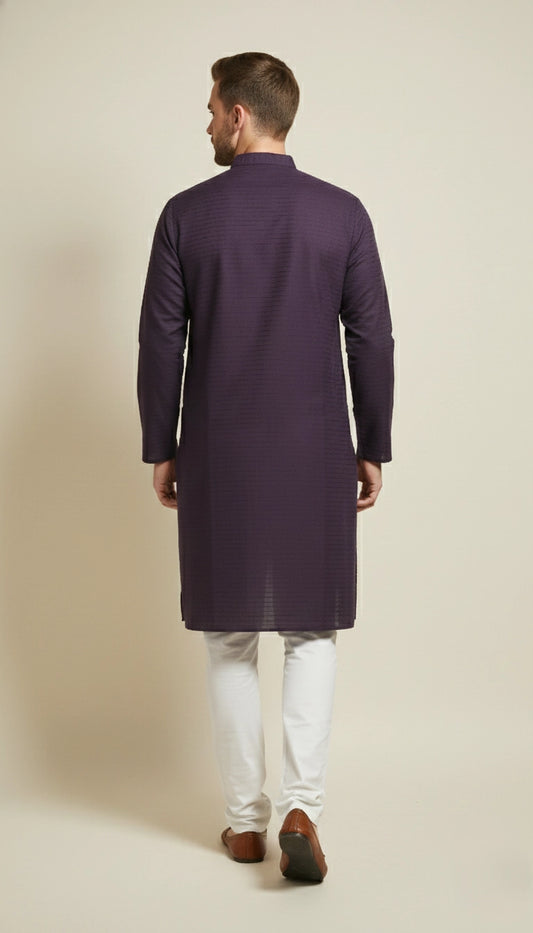 Deep Purple Cotton Kurta for Men (Mandarin Collar) | Dresswala NX