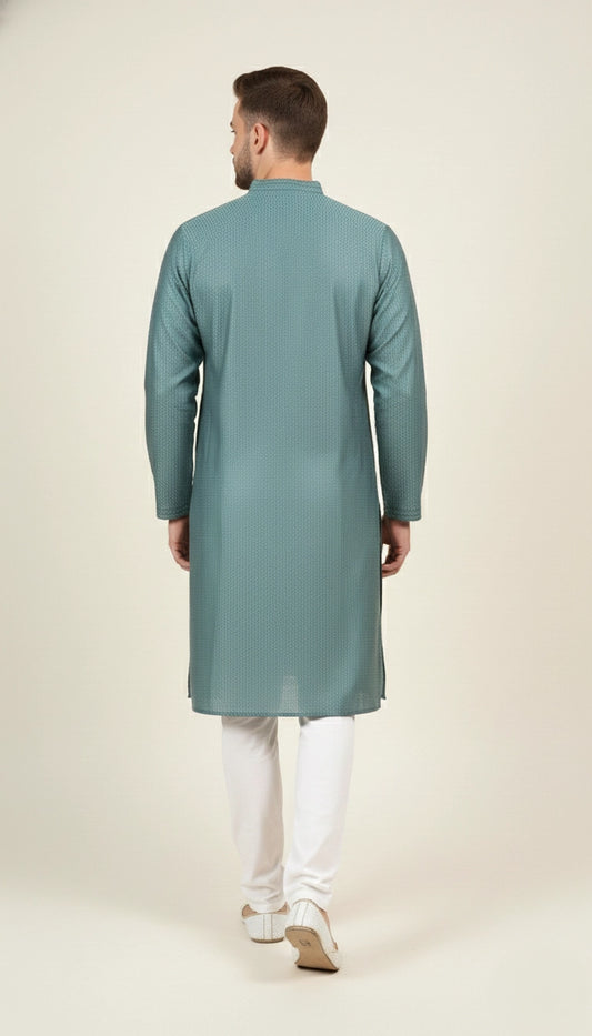 Teal Cotton Kurta for Men (Mandarin Collar) | Dresswala NX