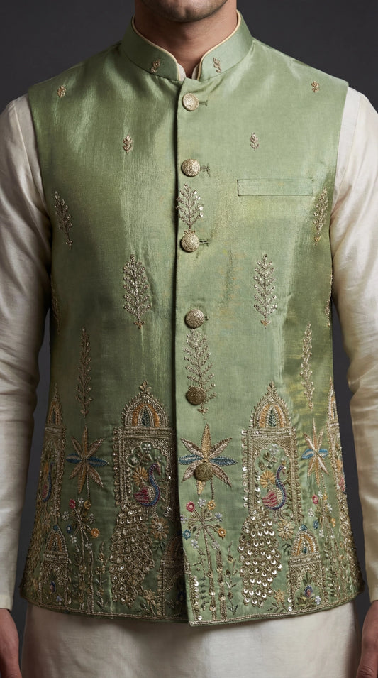 Sage Green Embroidered Waistcoat for Men | Dresswala NX