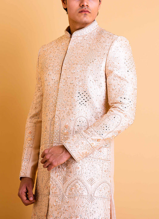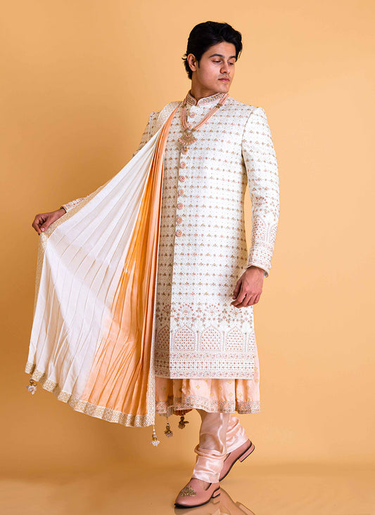 White and Peach Sherwani