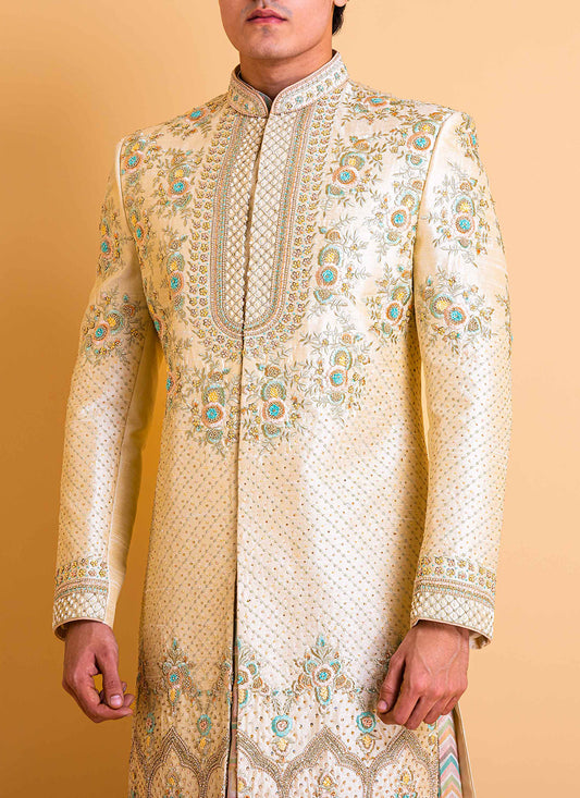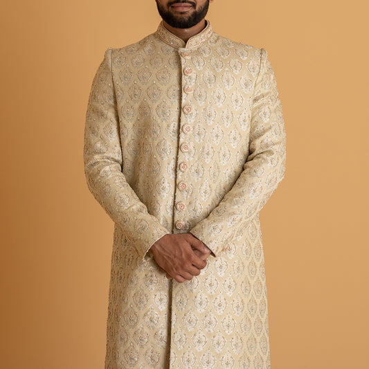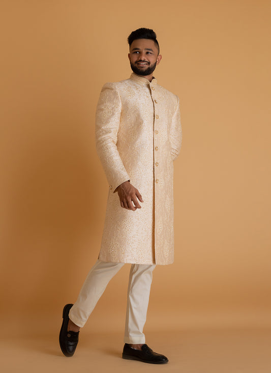 Cream Sherwani with Zari Work