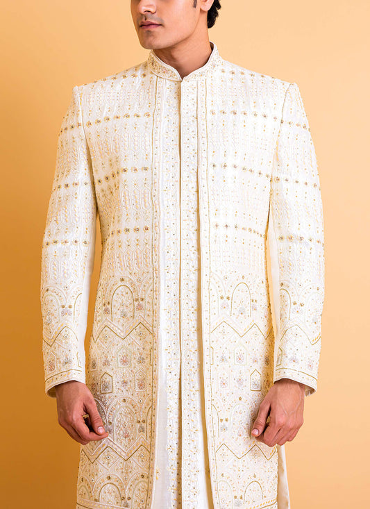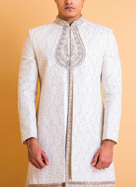 White Sherwani with Intricate Embroidery