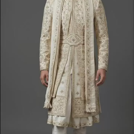 Ivory Regal Groom Sherwani with Intricate Embroidery | Dresswala NX