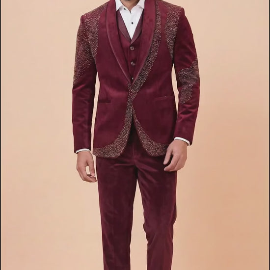 Maroon Suit with Embellished Blazer for Men | Dresswala NX