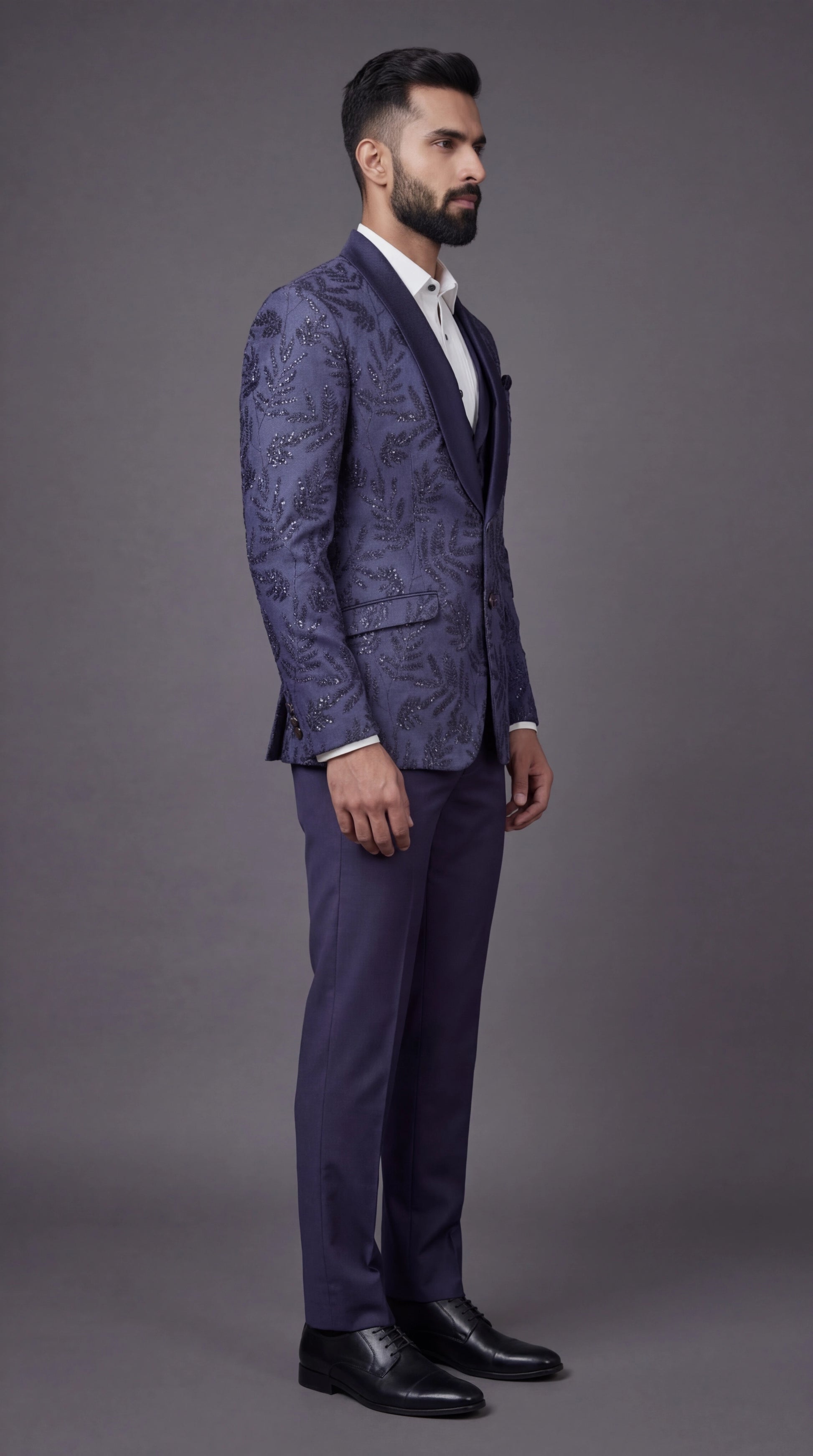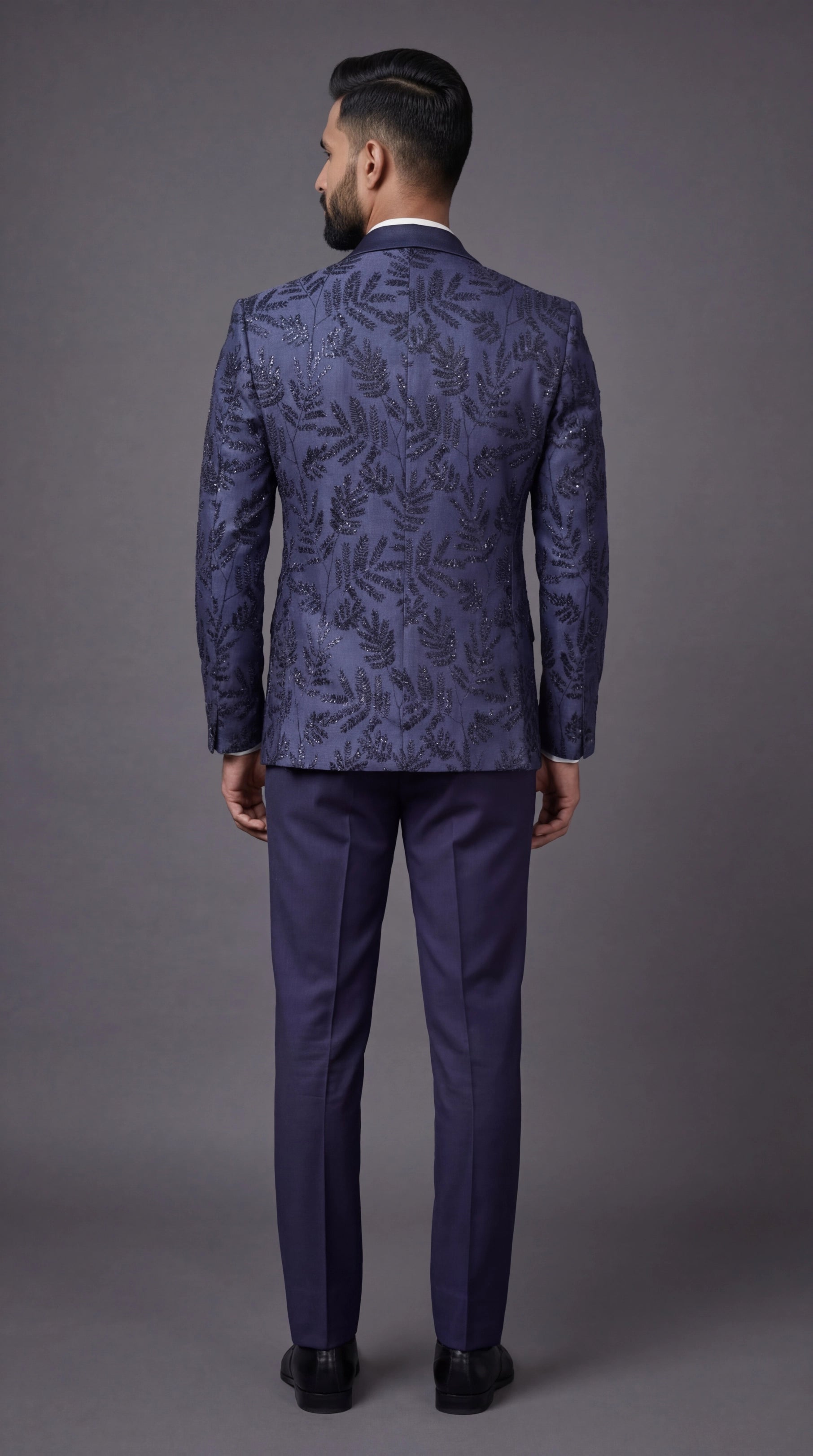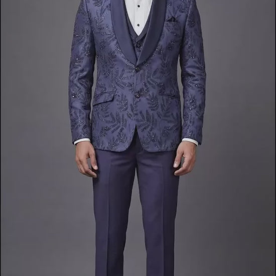 Buy navy blue textured Indo Western suit for men at Dresswala NX. Featuring an elegant shawl lapel, tailored fit, and luxury fabric—perfect for weddings, receptions, cocktail nights, and groom wear.