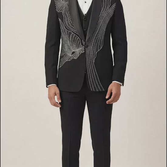 Black Embroidered Indo Western Suit for Men | Designer Groom Wear – Dresswala NX