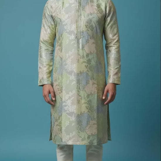 Men’s Pastel Floral Jacquard Kurta Set | Festive & Wedding Wear – Dresswala NX