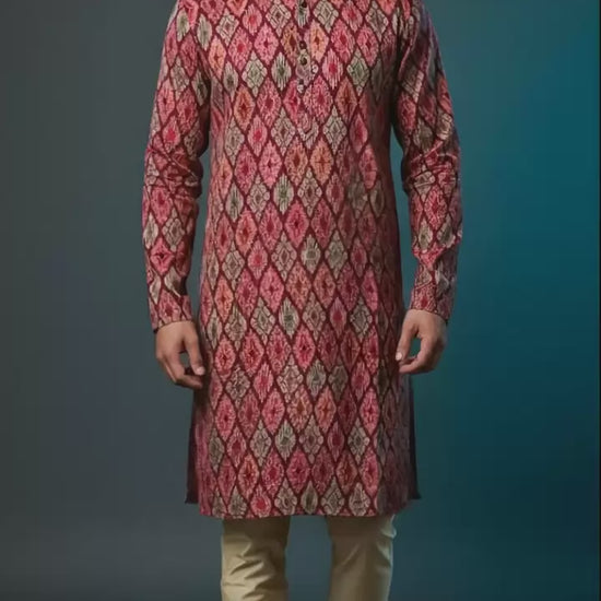 Men’s Red Multicolour Printed Kurta Set | Festive & Wedding Wear – Dresswala NX