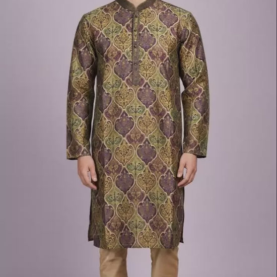 Purple-Green Printed Kurta Set for Men | Dresswala NX
