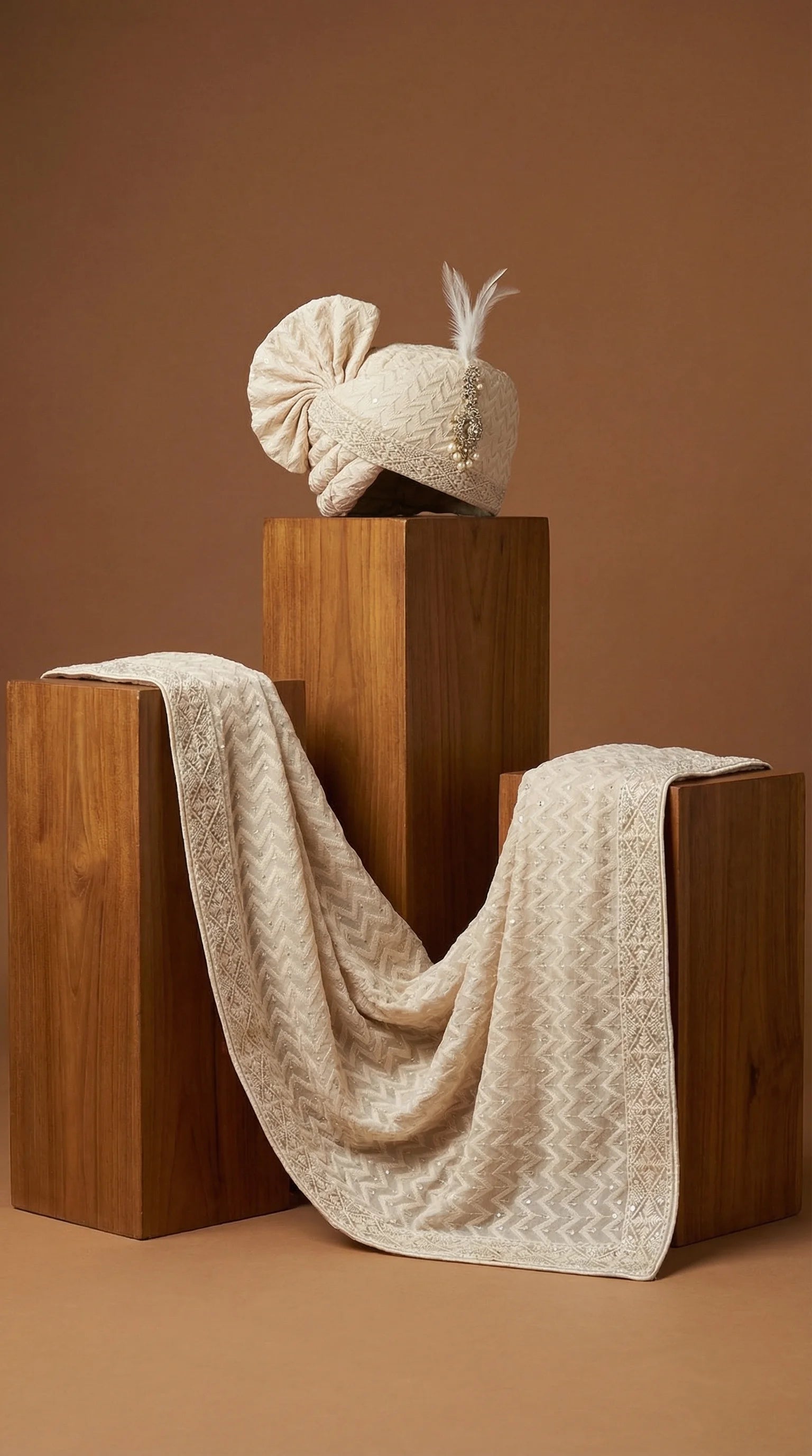 Rangraj Pearl Groom Safa Set for Men | Ivory Wedding Pagdi – Dresswala NX